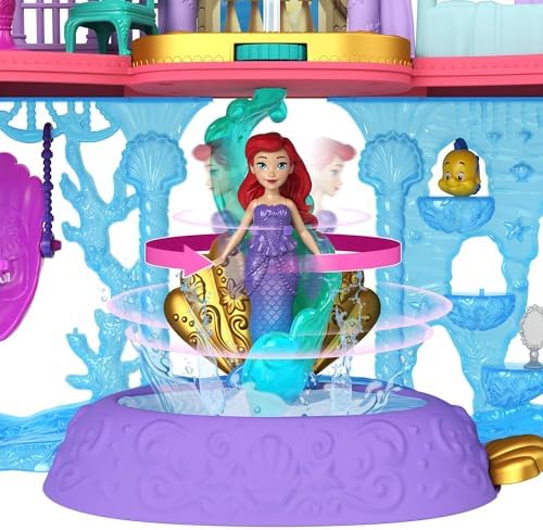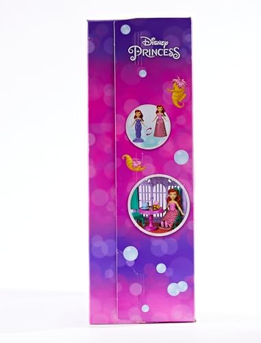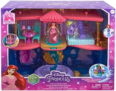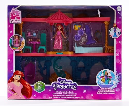 Product Description Ariel's land and sea kingdoms will delight fans in this playset, inspired by Disney's The Little Mermaid! A stackable doll house in charming small scale, the top of Ariel's castle is the world above the water and the bottom is the world below the waves. It comes with furniture, play pieces, a Flounder figure, and an Ariel doll with 2 fashions. Doll cannot stand alone. Key Features: Inspired by the Disney animated classic The Little Mermaid, this castle playset allows kids to recreate movie moments from both of Ariel's kingdoms: the land and the sea!,Playset is 31.1 cm/12.25' tall and includes 6 play areas kids will recognize from the movie, plus Ariel's adorable friend Flounder.,Ariel doll's land kingdom includes a spinning dance floor for castle celebrations, as well as Ariel's bedroom and a dining room with multiple food-inspired play pieces.,Ariel doll's underwater kingdom has a pool where kids can press a button to make the water splash It also includes a seashell swing and a fountain that Ariel and Flounder can clip to for spinning fun.,Kids can take the Ariel small doll (3.5 inches) from mermaid to human with two fashions: her pink castle fashion and a mermaid outfit that changes from purple to blue when submerged in water.,Multiple Storytime Stackers playsets can be stacked on top of each other or connected side by side.,Fans can collect all the Disney Princess stacking playsets and build the ultimate kingdom! Each set sold separately, subject to availability. This product is designed with premium quality, ensuring durability and superior performance.
