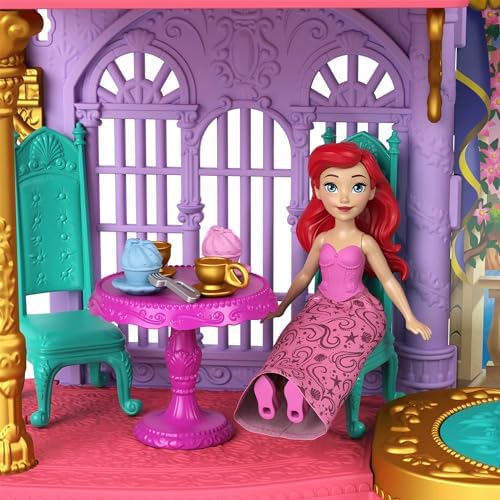 Mattel - Mattel Disney Princess The Little Mermaid Toys Ariel Doll House Stackable Castle with Land & Sea Levels Small Doll 1 Friend 12 Pieces & Pool