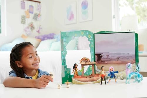 Mattel Disney Princess Raya Classic Storybook Set with 7 Characters Including Raya Human Sisu Dragon Sisu Small Doll