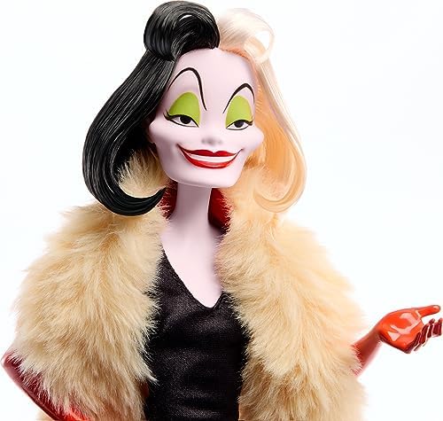 nan Key Features: Inspired by the animated characters in Disney movies, meet three Villains dolls perfect for expanding the Disney world of imaginative play: the Evil Queen, Cruella De Vil and Yzma.,In her gold crown and signature purple gown with white standing collar, the Evil Queen doll appears fashionably fierceaand she will do anything she can to stop Snow White.,Puppy-obsessed Cruella De Vil doll embodies evil from head to toe, in a gorgeous black gown with a faux fur coat and long gloves, accentuated with her striking black and white hairstyle.,Power-hungry Yzma completes this wonderfully wicked doll trio, wearing a black slinky gown with spiky feather collar and a regal purple headpiece.,Fans can collect all the Disney dolls and build the ultimate Disney doll collection Each sold separately, subject to availability. This product is designed with premium quality, ensuring durability and superior performance.