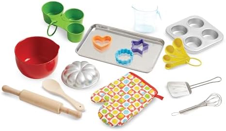 Product Description Product Description What will children pretend to bake with this 20-piece set? Anything they can think of! Promote creative play and imaginative thinking with these pretend play baking tools made of premium materials like stainless steel and solid wood, sized just right for little hands and play kitchens. Key Features: Pretend to cook up a deliciously good time with this ultimate play food baking set with 20 pretend play baking tools,Includes pretend play oven mitt, measuring spoons and cups, whisk, spatula, mixing bowl, muffin tin, and more,Made from heavy-gauge stainless steel, solid wood utensils, and durable plastic,Features a recipe for fun dough to mix up and play with,The ultimate play kitchen accessory collection This product is designed with premium quality, ensuring durability and superior performance.