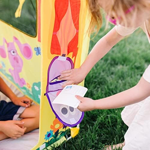 Product Description ThereaTMs plenty of room to set up house and let imaginations grow in the roomy and exciting BlueaTMs House play tent! The full-color, easy-to-assembly fabric play space stands approximately 4 feet tall, allowing multiple kids, three and older, to create their own Blue's Clues & You! adventures. The front door rolls up and the mailbox flap opens and closes, revealing a mail slot for the included postcard. The imaginative play space features a chimney on the roof, mesh windows for ventilation, and durable floor material. Key Features: Roomy and sturdy nearly 4-foot-tall BlueaTMs House (from BlueaTMs Clues & You) indoor or outdoor fabric tent playhouse with vibrant, full-color exterior artwork and storage tote,The front door flap rolls up, mailbox flap opens and closes with hook and loop tab to reveal mail slot for included postcard; mesh windows allow for ventilation; sturdy floor material resists wear and tear,Includes illustrated assembly instructions (adult assembly required); easy to assemble and easy to pack away in storage tote,BlueaTMs Clues & You promotes kindergarten-readiness, inspiring confidence, empowerment, and kindness in preschoolers as they develop their problem-solving, social, and developmental skills through play,Makes a great gift for preschoolers, ages 3 to 5, for hands-on, screen-free play This product is designed with premium quality, ensuring durability and superior performance.