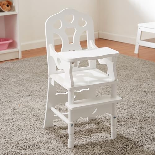 Product Description Help favorite dolls and stuffed animals get ready for mealtime in this realistic and classically styled wooden high chair that suits any dAcor! Made to fit dolls up to 20 inches tall, this durable white chair stands approximately 18 inches tall and features a removable tray and wipe-clean surface. Clear instructions make it easy to assemble with just a screwdriver (not included). Mine to Love dolls and accessories encourage empathy and help kids express themselves as they explore grown-up roles and responsibilities. Key Features: White wooden play high chair for dolls and stuffed animals up to 20 inches tall,Features removable tray and wipe-clean surface; easy to assemble (screwdriver required, not included),Coordinates perfectly with Mine to Love Play Beds, Play Armoire, Play Stroller, and Play Cradle; 18aH x 8aW x 11aD assembled,Encourages empathy and helps kids express themselves,Makes a great gift for toddlers and preschoolers, ages 3 to 6, for hands-on, screen-free play This product is designed with premium quality, ensuring durability and superior performance.