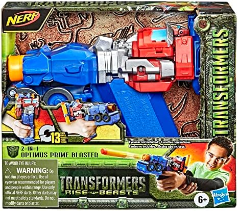 Product Description Blast into battle with the 2-in-1 Optimus Prime Blaster, powered by Nerf. Imagine epic battles with the figure in robot mode, then convert to blaster mode to take the battle to the real world! The battle on Earth is no longer between the heroic Autobots and the evil Decepticons.A Transformers: Rise of the Beasts introduces mysterious factions, the Maximals, the Predacons, and the Terrorcons, in an epic 90s globetrotting adventure. TRANSFORMERS and all related characters are trademarks of Hasbro and are used with permission. A 2022 Paramount Pictures Corporation.A All Rights Reserved. Key Features: 2-IN-1 CONVERTING BLASTER: Get ready to blast into battle with Optimus Prime! This 2-in-1 Optimus Prime Blaster toy is the first Transformers action figure to convert into a blaster, powered by Nerf,2 MODES: This red and blue Transformers 2-in-1 Optimus Prime Blaster converts from robot mode to blaster mode in 13 steps,2 NERF DARTS AND TARGETING SCOPE: Comes with 2 Nerf darts and features a targeting scope to line up shots Convert to blaster mode and pull the trigger to fire darts,TRANSFORMERS: RISE OF THE BEASTS: Featuring characters inspired by the epic Transformers movie, Transformers: Rise of the Beasts!,LOOK FOR MORE TRANSFORMERS MOVIE TOYS: Collect other Transformers: Rise of the Beasts movie toys (Each sold separately, subject to availability) This product is designed with premium quality, ensuring durability and superior performance.