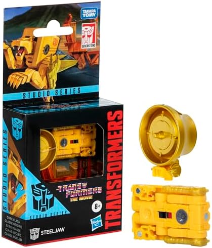 Product Description Bring the epic action of the Transformers movies from the big screen into your collection with the Transformers Studio Series Core Class Steeljaw action figure, inspired by The Transformers: The Movie! Transformers Studio Series toys are collectible action figures that feature movie-inspired details and accessories. Convert the Studio Series Transformers action figure from lion to cassette mode in 6 steps and pose with the included wing and loudspeaker accessories. Key Features: THE TRANSFORMERS: THE MOVIE STEELJAW: This Transformers Studio Series Steeljaw action figure is highly articulated for posability and features movie-inspired deco and details,TRANSFORMERS TOYS STUDIO SERIES CORE CLASS: This 3.5-inch (8.9 cm) collectible action figures is highly articulated for posability and designed with specs and details to reflect the Transformers movie universe,2 ICONIC MODES: This Studio Series Transformers toy features classic conversion between lion and cassette modes in 6 steps,AWESOME ACCESSORIES: Transformers figure comes with a loudspeaker accessory and a connector piece to attach in lion mode Also comes with 2 wing accessories and a connector piece to attach to the figureaTMs back,ARTICULATED FOR PLAY AND DISPLAY: Transformers figures feature articulated heads, arms, and legs for action poses,COMPATIBLE WITH AUTOBOT BLASTER: In cassette mode, this figure can fit inside the tape deck chest of the Transformers Voyager 86-25 Autobot Blaster toy (sold separately, subject to availability),COLLECT STUDIO SERIES MOVIE FIGURES: This action figure toy makes a great collectible figure gift for any Transformers fan Look for more Transformers Studio Series toys to build a collection (each sold separately, subject to availability) This product is designed with premium quality, ensuring durability and superior performance.