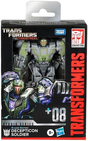 Product Description Bring the epic action from the Transformers video games into your collection with the Transformers Studio Series Deluxe Class 08 Gamer Edition Decepticon Soldier action figure, inspired by the Transformers: War for Cybertron video game! Transformers Studio Series Gamer Edition toys are collectible action figures that feature video game-inspired details and accessories. Convert the Studio Series Transformers action figure from robot to Cybertronian sports car mode in 12 steps and pose the Decepticon Soldier toy in the included Save Zeta Prime removable backdrop scene. Key Features: TRANSFORMERS STUDIO SERIES GAMER EDITION: Transformers Studio Series is expanding into the video game universe! These collectible Transformers action figures are based on the Transformers video games,TRANSFORMERS: WAR FOR CYBERTRON DECEPTICON SOLDIER: This Transformers Studio Series 08 Gamer Edition Decepticon Soldier action figure is highly articulated for posability and features video game-inspired deco and details,TRANSFORMERS TOYS STUDIO SERIES DELUXE CLASS: This 4.5-inch (11.5 cm) collectible action figures is inspired by iconic movie scenes and designed with specs and details to reflect the Transformers movie universe,2 ICONIC MODES: This Studio Series Transformers toy features classic conversion between robot and Cybertronian sports car modes in 12 steps,AWESOME ACCESSORIES: Transformers figure comes with a repeat blaster accessory that attaches in both modes,ARTICULATED FOR PLAY AND DISPLAY: Transformers figures feature articulated heads, arms, and legs for action poses,REMOVABLE BACKDROP: Removable backdrop displays the Transformers Studio Series Decepticon Soldier figure in the Save Zeta Prime scene This product is designed with premium quality, ensuring durability and superior performance.