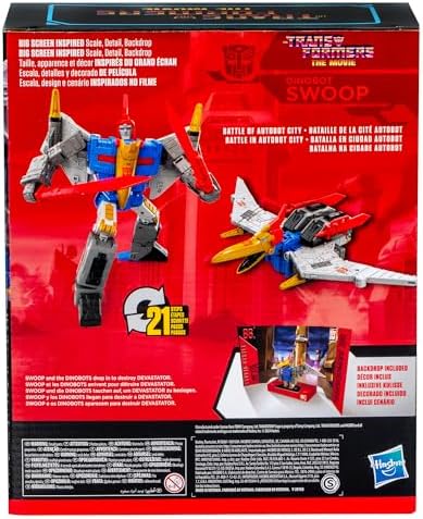 Product Description Bring the epic action of the Transformers movies from the big screen into your collection with the Transformers Studio Series Leader Class Dinobot Swoop action figure, inspired by The Transformers: The Movie! Transformers Studio Series toys are collectible action figures that feature movie-inspired details and accessories. Convert the Studio Series Transformers action figure from robot to Pteranodon mode in 21 steps and pose the Dinobot Swoop toy in the included Battle of Autobot City removable backdrop scene. Key Features: THE TRANSFORMERS: THE MOVIE DINOBOT SWOOP: This Transformers Studio Series 86-26 Dinobot Swoop action figure is highly articulated for posability and features movie-inspired deco and details,TRANSFORMERS TOYS STUDIO SERIES LEADER CLASS: This 8.5-inch (21.6 cm) collectible action figures is highly articulated for posability and designed with specs and details to reflect the Transformers movie universe,2 ICONIC MODES: This Studio Series Transformers toy features classic conversion between robot and Pteranodon modes in 21 steps,AWESOME ACCESSORIES: Transformers figure comes with 2 blasters and 2 sword accessories Accessories attach in both modes,ARTICULATED FOR PLAY AND DISPLAY: Transformers figures feature articulated heads, arms, and legs for action poses,REMOVABLE BACKDROP: Removable backdrop displays the Transformers Studio Series Dinobot Swoop figure in the Battle of Autobot City scene,COLLECT STUDIO SERIES MOVIE FIGURES: This action figure toy makes a great collectible figure gift for any Transformers fan Look for more Transformers Studio Series toys to build a collection (each sold separately, subject to availability) This product is designed with premium quality, ensuring durability and superior performance.