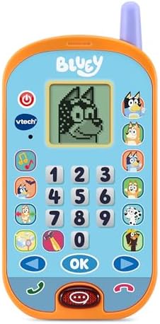 Product Description Ready for adventure? Bluey calls! a Interactive learning mobile phone with the characters from Bluey's world a With the original voices of Bluey and her sister Bingo and original music from the series a 4 game modes: 3 pre-installed educational games, 1 creative activity with microphone, phrases of bluey and bingo and settings a With 3 personalised ringtones a Learning content: numbers Music, hand-eye coordination, role play and content from the series. 6 figure keys (Bluey, Bandit, Chilli, Bingo, Chloe and Snickers) trigger voice messages and matching animations. 4 activity buttons. 10 number keys. 2 arrow keys. Key Features: Interactive learning mobile phone with the characters from Bluey's world,Features the original voices of Bluey and her sister Bingo and original music from the series,4 Game Modes 3 pre-installed educational games, 1 creative activity with microphone, sets of bluey and bingo and settings,Learning content: numbers & counting, music, hand-eye coordination, role play and content from the series,Child-safe battery compartment, automatic switch-off and volume control This product is designed with premium quality, ensuring durability and superior performance.