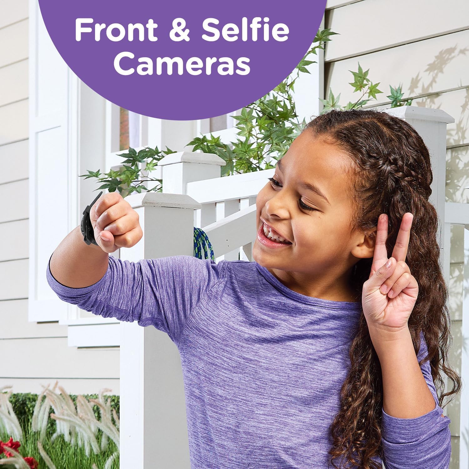 VTech KidiZoom Smartwatch DX4 " Black Interactive Kids' Watch Features: Dual Cameras " Take photos and videos with fun creative effects. Interactive Games & Challenges " Enjoy movement-based activities, reaction games, and fun challenges. Customizable Clock Faces " Choose from 50+ built-in designs or download more to help with time-telling skills. Shake the watch to hear the time aloud. Music & Creativity " Use the composer app to create music and explore fun artistic features. Splash-Proof & Durable " Designed for active kids, with a premium metal body. Rechargeable Battery " Comes with a lithium-ion battery; charge with the included micro-USB cable (avoid third-party adapters). Recommended for Ages 4+ Available Colors " Also offered in exclusive pink and blue options.
