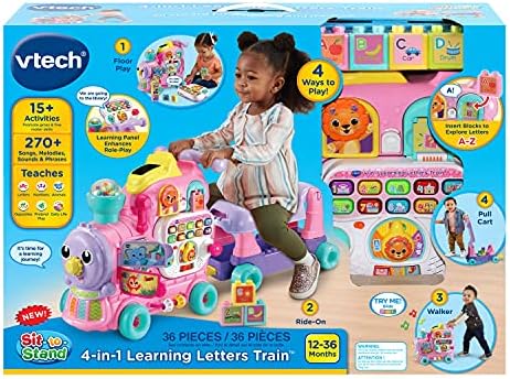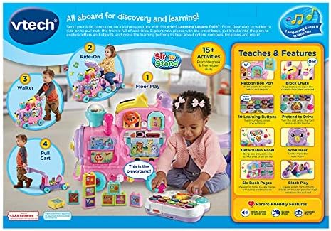 Product Description All aboard for discovery and learning with the 4-in-1 Learning Letters Traina! Take kids from floor play to walker push toy to ride-on to pull cart with this 4-in-1 interactive train and caboose. Sixteen activities encourage motor skills while teaching about letters, numbers, places and more. Venture to the library or visit the mountains with the six-page travel book and 10 number buttons. Explore all the ways to play with the 13 double-sided alphabet blocks! Insert them into the Recognition Port to hear about letters and objects. Key Features: 4-in-1 train, cart and activity panel takes kids from floor play to walker to ride-on to pull cart,Removable panel enhances floor play with 10 learning buttons that teach numbers, colors and locations and encourages role-play driving,16 activities include 13 double-sided interactive alphabet blocks, travel book, turning gear and popping beads,Block play: insert into port to hear about letters and objects; drop down the counting chute; build on cart; tumble down the pegged panel,Intended for ages 12a36 months; 42 pounds max; requires 3 A batteries; batteries included for demo purposes only; new batteries recommended for regular use This product is designed with premium quality, ensuring durability and superior performance.