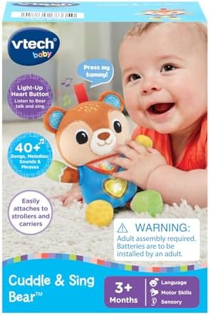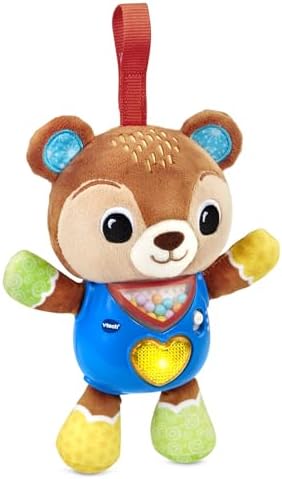 Product Description Little cubs can delight their senses here, there or anywhere with this cuddly bear and its big heart! Grabbing the plush head, arms and legs helps improve fine motor skills, while the different patterns on each paw keep their gaze focused. Make rattling sounds with the colorful beads by shaking the snuggly friend, then play songs and hear about feelings with the big heart button. Bring this happy bear along for the ride by using the take-along strap that easily attaches to strollers, diaper bags and carriers. Key Features: Colorful patterns, soft fabrics and rattling beads grab and keep the attention of little ones' eyes and ears,Introduce language and music by pressing the big light-up heart button to hear cute songs and explore feelings,Help little ones work on grabbing with this cute bear that they'll want to hug and hold,Keep babies entertained at home or on-the-go using the convenient strap that attaches to strollers, diaper bags and carriers,Intended for ages 3+ months; requires 1 AA battery; battery included for demo purposes only; new battery recommended for regular use This product is designed with premium quality, ensuring durability and superior performance.