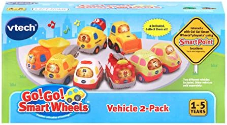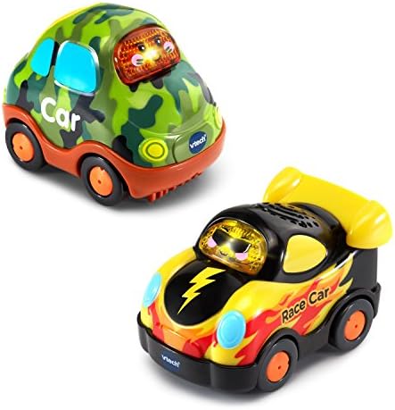 Product Description Kids can pretend to go anywhere as they play with the camo car and race car included in the go! Go! Smart wheels camo car & race car by VTech. Each vehicle responds to smart point locations with music, sounds and phrases on go! Go! Smart wheels playsets and go! Go! Smart animals tracks (each sold separately). perfectly sized for little hands, these electronic vehicles Also entertain children with a light-up button that activates music, sounds and phrases. Key Features: Roll vehicles over Smart point locations on go! Go! Smart wheels playsets (each sold separately), and they'll respond with different phrases and more,Perfectly sized for little hands, these electronic vehicles entertain children with a light-up button that activates music, sounds and phrases,Through pretend play, your little one will learn about the vehicles, letters and more,Each vehicle responds electronically to over 50 Smart point locations on other go! Go! Smart wheels, go! Go! Smart animals and select go! Go! Smart friends playsets (each sold separately),These toy cars are intended for ages 1 to 5 years; the push toy cars require a total of 4 AA batteries (2 for each vehicle) which are included for demo purposes, Use new batteries for regular use Automatic power-off saves batteries This product is designed with premium quality, ensuring durability and superior performance.
