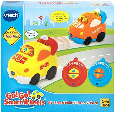 Product Description Grab the remote controls and race a friend with the Go! Go! Smart Wheels RC SmartPoint Racer 2-Pack by VTech! Race the toy race cars on the Go! Go! Smart Wheels Ultimate RC Speedway (sold separately), hear the electronic vehicles respond to the SmartPoint locations with different phrases and sound effects, and watch them activate four action zones. Each RC SmartPoint Racer and remote set has three frequencies. Match the frequency of a remote to a racer so your child can race up to 3 at once (additional vehicle sold separately). Key Features: Race on the Go! Go! Smart Wheels Ultimate RC Speedway (sold separately),Hear the electronic race cars respond to SmartPoint locations with different phrases and sound effects,Both race cars entertain your little one with light-up driver buttons that activate playful music and fun sounds,Play in remote control mode using the remote control or choose standard mode and play with the racers just like a regular Go! Go! Smart Wheels SmartPoint vehicle,For even more fun, collect other Go! Go! Smart Wheels vehicles and playsets (sold separately) This product is designed with premium quality, ensuring durability and superior performance.