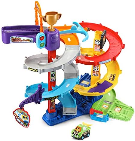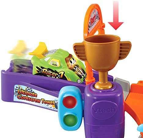 Product Description Race into three feet of fun with the two-in-one Go! Go! Smart Wheels Ultimate Corkscrew Tower ! This versatile playset features two exciting track configurations. Stack tracks one atop the other to form an impressive corkscrew track over three feet high for dizzy downhill fun, or set up the tracks side by side for a dual-track racing experience. Place Rocky the Race Car on the launcher, then push the trophy to send the car zipping down the tracks on a fast-paced ride. Key Features: Race down the 3+ foot spiral or set up side-by-side tracks to encourage fine motor skill development and problem-solving,Includes Rocky the Race Car; press the windshield button to learn about the letter "R" and to hear three sing-along songs and six melodies,Five SmartPoint locations play 40+ songs, melodies, sounds and phrases when vehicles ride over them, reinforcing cause-and-effect learning,Build a Go! Go! Smart Wheels world with other Go! Go! Smart Wheels playsets and vehicles (sold separately),Intended for ages 1-5 years; requires 2 AA batteries; batteries included for demo purposes only; new batteries recommended for regular use This product is designed with premium quality, ensuring durability and superior performance.