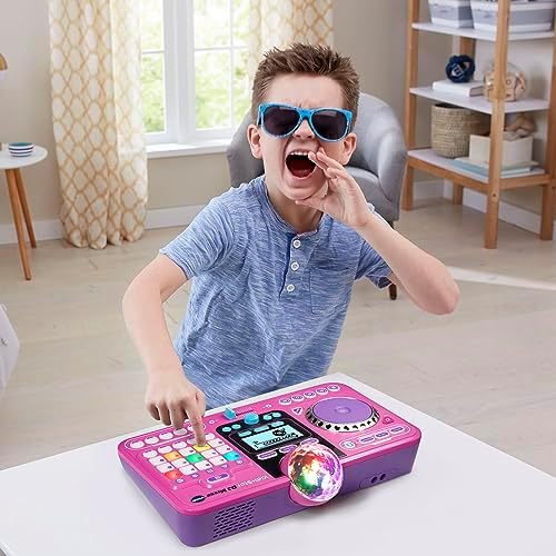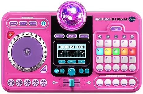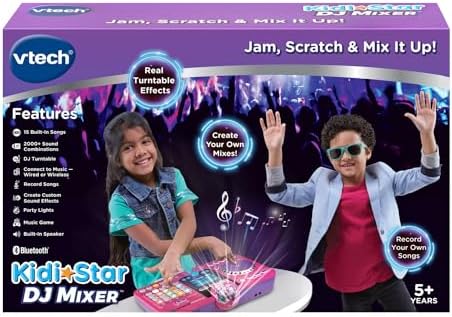 Product Description Be the star of the show with your own DJ turntable. Scratch, jam and create custom mixes with 15 included songs or connect your own music player via audio cable or BLUETOOTH wireless technology. Play with the sound grid to create over 2000 sound combinations and plug in your own microphone to record custom sound effects too! Add effects using the sliders to get your remix just right. Add and remove vocals and effects, fine tune the mix and record your mashup. Key Features: Mix and jam with a DJ turntable, 15 built-in songs and 2000+ sound combinations,Create custom sound effects to mix onto songs, then save your music samples and add light effects for a dazzling DJ party,Connect to your music playlist via BLUETOOTH wireless technology or audio cable; play your mash-ups through the built-in speaker or plug in headphones (music player, audio cable and headphones not included),Fine tune your DJ talent by playing along with a built-in music game,Intended for ages 5+ years; requires 4 A batteries; batteries included for demo purposes only; new batteries recommended for regular use This product is designed with premium quality, ensuring durability and superior performance.