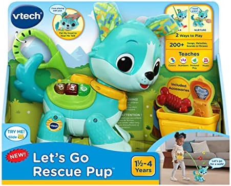 Product Description The LetaTMs Go Rescue Pup is ready to be the newest member of the family. With a detachable leash and puppy care accessories, this pup comes with what your little one needs to care for their new pet. Your little pet-owner-in-training can walk, feed, give water to and play with their new doggy friend. Two play modes enhance puppy playtime by introducing colors and numbers in Learning mode. Hear puppy care tips and play a color game in Nurture mode. Key Features: Meet the mess-free pup that's just right for your little pet-owner-in-training; take the pup for a walk with the detachable leash,Hear about colors, numbers and puppy fun facts in Learning mode,Find out how to lovingly care for your pup in Nurture mode and play games like Find the Colors,Multiple sensors on the puppy give responses when kids walk, pet and give water to their new little friend; food, water and bone store in the hip pouch,Intended for ages 1.5a4 years; requires 2 A batteries; batteries included for demo purposes only; new batteries recommended for regular use This product is designed with premium quality, ensuring durability and superior performance.