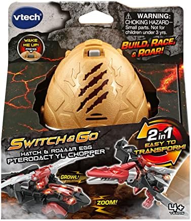 Product Description Create an egg-cellent dino world with the Switch and Go Hatch and Roaaar Egg Pterodactyl Chopper! Open the egg and find all the pieces you need to build your 2-in-1 dinosaur helicopter. Fly your cool helicopter around with whap-whap chopper sounds and the voice of the pilot. Then easily transform it into a terrifying pterodactyl! Add scary pterodactyl screeches with the push of a button to rev up imaginative play. Create a Switch and Go world, then race or challenge other Hatch and Roaaar Egg creatures (sold separately). Intended for ages 4+ years. Requires 1 AA battery. Key Features: Fly into a 2-in-1 dino helicopter world with a terrifying pterodactyl that easily transforms into a cool chopper,Add pterodactyl screeches, whap-whap chopper sounds and flashing lights with the push of a button to encourage imagination,Crack open the egg to find all the pieces needed to build a dinosaur helicopter; may require adult assembly,Create a Switch and Go world, then race or challenge other Hatch and Roaaar Egg creatures (sold separately),Intended for ages 4+ years; requires 1 AA battery; battery included for demo purposes only; new battery recommended for regular use; may require adult assembly This product is designed with premium quality, ensuring durability and superior performance.