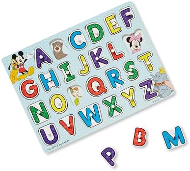 Melissa & Doug - Melissa & Doug Disney Wooden Peg Puzzles Set: Letters Numbers and Shapes and Colors Letters And Number Puzzles Disney For Toddlers And Kids Ages 3+