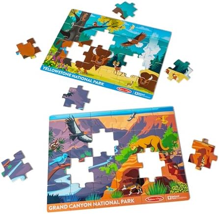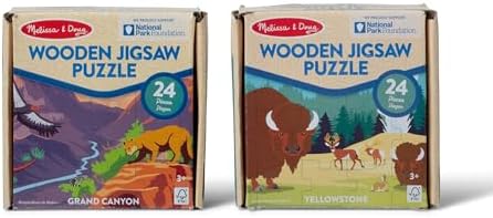Product Description This wooden jigsaw puzzle bundle is a perfect way to make learning fun as kids discover our beautiful national parks! Complete the 24-piece puzzle of Yellowstone to reveal a park scene and the animals and plants that live there. The 24-piece Grand Canyon puzzle also reveals native plants and animals that make the Grand Canyon their home. Each sturdy wooden puzzle includes a reference picture of the completed scene, and full-color ID guide in English and Spanish for learning about the native species and fun search-and-find activities. Key Features: As part of our new National Park Foundation collection, this bundle includes the 24-piece Yellowstone Wooden Jigsaw Puzzle and the 24-piece Grand Canyon Wooden Jigsaw Puzzle,The 24-piece Yellowstone puzzle completes a colorful Yellowstone National Park scene featuring its native plants and animals; puzzle measures 9 in x 12 in.,The 24-piece Grand Canyon puzzle completes a colorful scene of the Grand Canyon featuring its native plants and animals; puzzle measures 9 in x 12 in.,Each sturdy, wooden puzzle includes a full-color guide with 12 plant and animal IDs in English and Spanish Puzzles are stored in a sturdy cardboard box,Makes a great gift for girls and boys ages 3 and older for hands-on, screen-free play; items may ship separately This product is designed with premium quality, ensuring durability and superior performance.