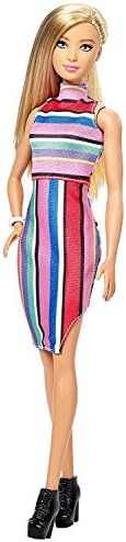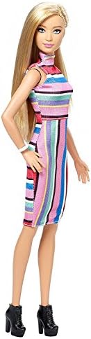 nan Key Features: Barbie Fashionistas doll wears a fabulous dress with multi-colored horizontal stripes on the bodice and vertical stripes on the skirt.,Black booties are right on trend, and a white bracelet is a chic accessory.,Long blonde hair styled asymmetrical with a partial shaved head completes her fabulous look.,Find your style and play out your stories.,More variety makes collecting Barbie Fashionistas dolls even more fun Collect them all (each sold separately, subject to availability). This product is designed with premium quality, ensuring durability and superior performance.