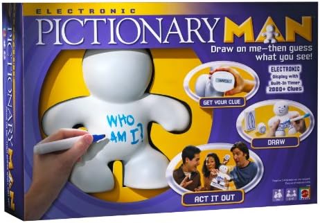 Product Description From the Manufacturer Are you looking for big laughs at your next game night? Then, you better call the Man a Pictionary Man! ItaTMs like Pictionary and Charades fused into the worldaTMs wildest game ever! Peek at the display on the bottom of the little guyaTMs foot to get your word or phrase. Then, sketch directly on the Man and his props, and use them to act out the answer before the buzzer goes off! How would you draw these: Kick the bucket, bikini waxer, umpire or heartburn? Draw your own conclusions. Literally. Key Features: Pictionary Man combines Pictionary with charades,Get your clues by looking at the bottom of Pictionary man's foot,It is up to you to draw them, act them out and get your teammates to guess the word right word,Combines drawing, electronic clues, and interactive accessories,Classic games combined This product is designed with premium quality, ensuring durability and superior performance.