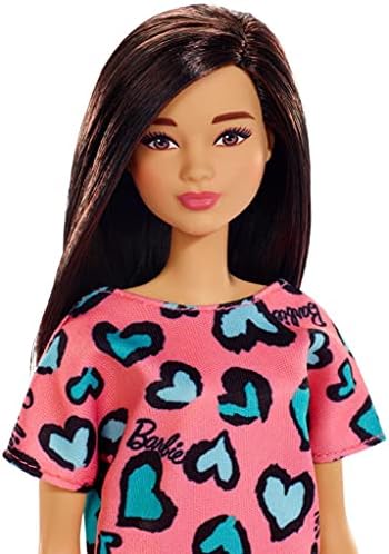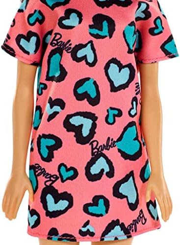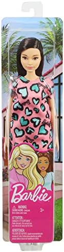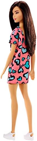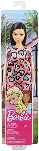 Product Description Barbie doll is easy to love wearing a t-shirt dress with a signature heart-print -a pair of white platform sneakers adds another trendy touch. Key Features: Barbie doll is ready for anything in a versatile pink dress that's right on trend with a signature heart print in shades of blue!,White platform sneakers make a cool statement.,Her brunette hair is styled straight for a modern look.,Young fashionistas ages 3 to 7 years old will love the bright colors and trendy style.,Kids can tell all kinds of stories because when a girl plays with Barbie, she imagines everything she can become! This product is designed with premium quality, ensuring durability and superior performance.