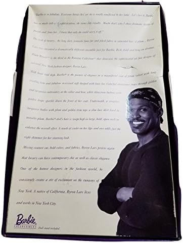 Product Description The latest creation by Byron Lars, Plum RoyaleAA Barbie doll, is truly a fashion sensation from head to toe. Her spectacular ensemble features a stunning lined aubergine-colored coat that flows into a long asymmetrical train. Oversized, brown faux fur cuffs and rhinestone details add captivating flair. Underneath she wears a strapless turquoise bodice and a form-fitting plum colored skirt with an overlay of brown and golden lace. Sparkling earrings and an updo styled in large barrel curls with short blunt-cut bangs add the final glamorous details to this exquisite Limited Edition beauty. Key Features: Edition: Limited Edition,Collection: Byron Lars Barbie Dolls,Release Date: 1999,Barbie This product is designed with premium quality, ensuring durability and superior performance.