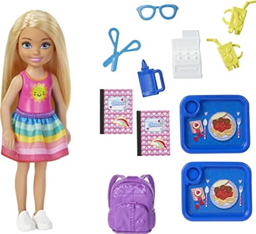 Product Description Chelsea and her friends inspire young minds to explore the world. Just like big sister Barbie, they love to try new things, challenge themselves and have fun. This Barbie Club Chelsea School playset is the perfect place for young minds to explore the classroom and beyond! Sweet schoolhouse decorations, storytelling accessories and multiple play areas inspire imaginative fun. When class is in session, seat Chelsea doll and a friend (sold separately) in the two desk and chair sets. A blackboard accessory encourages storytelling: flip it back and forth to switch between subjects. Key Features: Barbie Club Chelsea dolls and toys inspire imaginations to explore the world with fun themes kids love like this Chelsea school playset with multiple play areas and pieces that can be arranged and rearranged for storytelling fun!,A classroom area inspires storytelling with desk and chair sets for Chelsea and a friend (sold separately) and a flipping blackboard with fun graphics.,A cafeteria space features a lunch counter with a cash register and lunch trays, so Chelsea doll can grab a snack before recess When it's time to play, send her down the slide or clip her into the swing and push!,With so many themed play pieces, like notebooks, juice boxes, school supplies, a backpack and pair of glasses for Chelsea, imaginations can play out endless school stories.,Chelsea doll is ready for class in a top with a sun graphic, a removeable skirt with bright rainbow print and casual white shoes. This product is designed with premium quality, ensuring durability and superior performance.