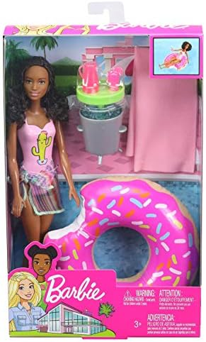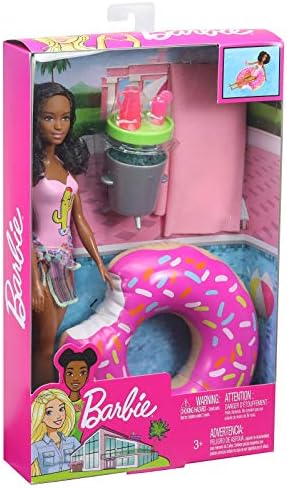 Product Description Barbie doll is ready to make a splash with this pool-themed playset -- it includes a donut-shaped floatie that really floats. Just place the doll on the pool toy to watch her float along, too Barbie doll is ready for the water dressed in a swimsuit with cover-up. Additional storytelling pieces include a beach towel, a cool table with ice bucket design and a pitcher and glass with plug-and-play features. Key Features: A"Kids will make waves at playtime with Barbie doll and her pool-themed playset that features a floatie that really floats,A"Just place the donut-shaped floatie into the water to see it float, then place Barbie in or on it to watch her float along, too,A"She makes a splash with her brunette hair styled in curls and wearing a pink swimsuit with cute cactus graphic and sheer striped cover-up.,A"A table with a cool ice bucket design with plug-and-play features holds the pitcher and cup in place for active play,A"A beach towel adds to the role-play fun. This product is designed with premium quality, ensuring durability and superior performance.