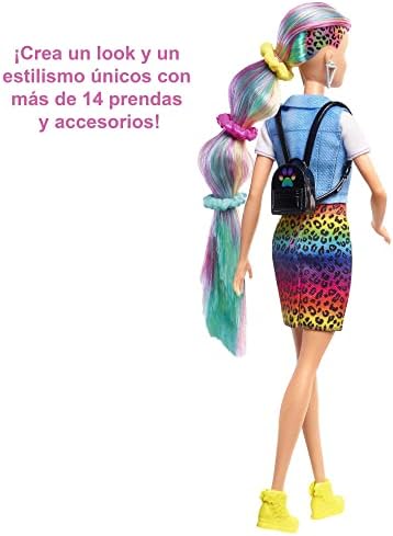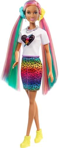 Barbie - Barbie Doll Leopard Rainbow Hair with Color-Change Highlights & 16 Styling Accessories Including Clothes Scrunchies Brush & More