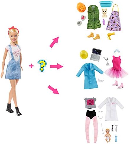 Product Description The Barbie surprise careers dolls delight kids with an unboxing experience that has eight pieces to discover! Each doll comes with two career looks featuring professionally themed clothing and accessories -but which careers Kids unbox to discover which surprises are inside. Four different compartments hold multiple surprises. They might find pieces to dress Barbie doll as a rocket engineer and figure skater, a geologist and pet groomer or a pediatrician and dancer. Key Features: Surprise kids with a Barbie surprise career doll and imagine the possibilities!,Three different dolls and multiple surprise career combinations create a fun unboxing experience!,Choose your favorite Barbie doll -or all three -a range of skin tones, hairstyles and clothing add to the fun; choose a brunette doll with "girl power" message on her shirt, a blonde doll with "smart girl" on her tank or a red-haired doll with "fearless" on her color-blocked tee.,Career looks are hidden inside -four compartments in the box each hold different pieces for so much unboxing fun!,Which careers will you find The possibilities include a rocket engineer and figure skater, a geologist and pet groomer or a pediatrician and dancer. This product is designed with premium quality, ensuring durability and superior performance.