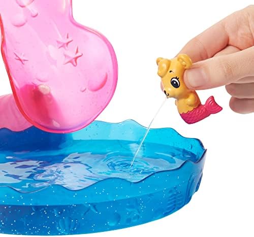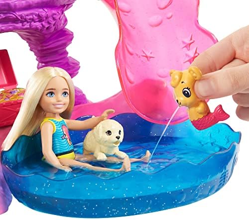 Product Description Make a splash at playtime with this Barbie Dreamtopia Chelsea playset! Featuring a detachable pool and grotto-inspired waterslide, Chelsea doll's lagoon is the perfect place for a magical island adventure. The set features Chelsea doll and two animal friends -a pet puppy and a mer-bear that doubles as a squirt toy for even more fun water play. Key Features: Inspire a magical island adventure with this Barbie Dreamtopia playset featuring Chelsea doll, her animal pals and lots of fun water play!,Clip Chelsea doll into the palm tree swing or help her climb the grotto tower and send her down the swirly slide into the pool!,A puppy inspires fun friendship stories, and the mer-bear pal doubles as a squirt toy to make an even bigger storytelling splash.,For an extra surprise, remove the clamshell and fill it with water, then tip it over the slide to create a magical waterfall!,A chest of "jewels" inspires an enchanted treasure hunt, and the lagoon-inspired pool can be detached to expand play even more.,With so many friends and storytelling opportunities, this Barbie Dreamtopia Chelsea playset makes a great gift for 3 to 7 year olds. This product is designed with premium quality, ensuring durability and superior performance.