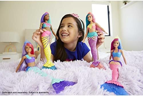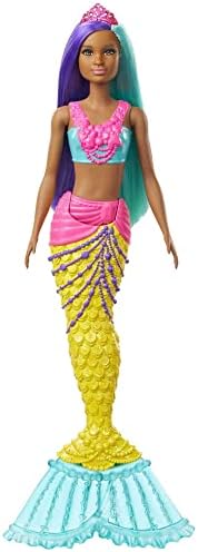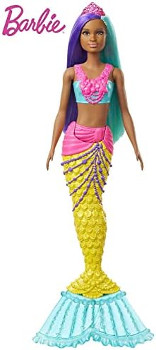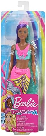 Product Description Barbie Dreamtopia mermaid dolls shine in rainbow brights and inspire young imaginations to dive into storytelling! This Barbie mermaid doll makes a splash in a colorful bodice and sparkly tail with fantastical details. A bright headpiece in her long, teal and purple hair puts the finishing touch on her look. Barbie doll's tail bends at the waist, so kids can tell all kinds of tales of their own: 'swim' in the sea or sit and shimmer in the sun. Key Features: Make a storytelling splash with mermaid dolls from Barbie Dreamtopia!,This Barbie mermaid doll shines in a colorful bodice and super-sparkly tail with fantastical details.,A bright headpiece in her long, teal and purple hair adds another burst of color.,Barbie mermaid doll bends at the waist so kids can pretend she's "swimming" in the sea or sit her up to let her shimmer in the sun!,Barbie Dreamtopia dolls and toys make the perfect gift for fairytale lovers 3 to 7 years old Kids can collect all the Dreamtopia dolls and toys to let their stories set sail! Each sold separately, subject to availability. This product is designed with premium quality, ensuring durability and superior performance.