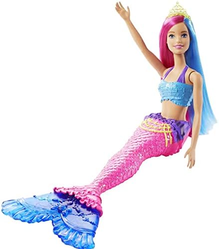 Product Description Barbie Dreamtopia mermaid dolls shine in rainbow brights and inspire young imaginations to dive into storytelling! This Barbie mermaid doll makes a splash in a colorful bodice and sparkly tail with fantastical details. A bright headpiece in her long, pink and blue hair puts the finishing touch on her look. Barbie doll's tail bends at the waist, so kids can tell all kinds of tales of their own: "swim" in the sea or sit and shimmer in the sun. Key Features: Make a storytelling splash with mermaid dolls from Barbie Dreamtopia!,This Barbie mermaid doll shines in a colorful bodice and super-sparkly tail with whimsical details.,A bright headpiece in her long, pink and blue hair adds another burst of color.,Barbie mermaid doll bends at the waist so kids can pretend she's "swimming" in the sea or sit her up to let her shimmer in the sun!,Barbie Dreamtopia dolls and toys make the perfect gift for fairytale lovers 3 to 7 years old Kids can collect all the Dreamtopia dolls and toys to let their stories set sail! Each sold separately, subject to availability. This product is designed with premium quality, ensuring durability and superior performance.