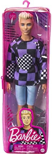Product Description Barbie and Ken Fashionistas celebrate diversity with fashion dolls that encourage real-world storytelling and open-ended dreams! With a wide variety of skin tones, eye colors, hair colors and textures, body types and fashions, the dolls are designed to reflect the world kids see today -- and their trendy outfits help set them apart with personalities that pop! Use the reusable vinyl package to store Barbie fashions and accessories, carry a doll or even decorate it (decoration supplies not included). Key Features: The Ken Fashionistas dolls stay cool with trendy looks and individual style.,Ken doll has an original body shape and wears a purple-and-black checkered sweater with a checkered heart and is paired with denim shorts.,White sneakers add the finishing touch for a hip, modern look.,Ken doll has sculpted cropped blonde hair.,Designed with a zipper, the reusable vinyl bag is perfect for storing the doll or other Barbie fashions and accessories (sold separately) plus kids can customize it with their own art supplies, like stickers So many ways to fill it and play!,Makes a great gift for kids 3 years and older -- they can play with style, play out stories and discover Barbie!,More variety can make collecting Ken and Barbie Fashionistas dolls even more fun -- kids can collect them to expand the possibilities (each sold separately, subject to availability).,Celebrate the Kencore fashion trend with the original inspiration. This product is designed with premium quality, ensuring durability and superior performance.
