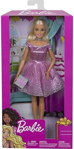 Product Description Barbie doll is ready to deliver a message of Happy Birthday! She comes inside a package with space to show who it's for and who it's from. Once delivered, kids can unbox her and make her a guest at the party! She's dressed in a sparkling, shimmery, pink party dress accessorized with a silvery necklace and strappy pair of shoes -- plus, she has a gift of her own to present to the birthday honoree. Key Features: Say, "Happy Birthday!" with Barbie Happy Birthday Doll!,She's dressed for a birthday party in a sparkling look with shimmery metallic pink bodice and glittery diamond-inspired overlay on the skirt.,Strappy silvery heels and a matching choker complete the festive outfit.,Barbie doll comes with a pretty silvery gift that matches her dress with a pink bow!,Write the birthday girl's name on the outside of the package and who it's from for a personal touch A" makes a perfect birthday gift for Barbie lovers of any age! This product is designed with premium quality, ensuring durability and superior performance.