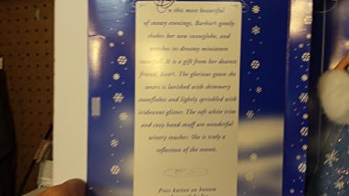 Product Description Doll is mint in box. Box has some imperfections. 1. Top front of open area of box is indented inward APX 6" Long in a curvature motion. Not sure if snowglobe even works. We did not want to do more damage by taking it out to see if it just needs batteries. Key Features: special snow globe a gift from ken,barbie with fur muff and collar,dressed in shimmery snowflakes This product is designed with premium quality, ensuring durability and superior performance.