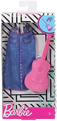 Product Description Barbie doll needs a wardrobe that can keep up with everything she wants to do -she has big career goals that kids can help her explore. With a job-themed outfit and accessory, career Barbie clothing packs are ready to set imaginations to work. Kids can play out a day as a musician with this look that's ready for a day on the job and comes with a guitar to really engage kids. Key Features: With Barbie doll clothes and an accessory themed to a day on the job, imaginations can get to work dreaming up all kinds of career stories!,This musician look will inspire kids who love music, performing and entertainment!,The denim dress fits all kinds of musical genres and works for rehearsal or performance with button details and embroidery-inspired flowers.,It comes with a pink acoustic-style guitar decorated with flowers and a strap that lets kids hit all the right playtime notes!,Barbie career fashion sets make a great gift to expand a kids' collection of doll clothes and dreams of the future!,material type: Fabric This product is designed with premium quality, ensuring durability and superior performance.
