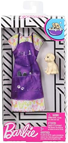Product Description Barbie doll needs a wardrobe that can keep up with everything she wants to do -she has big career goals that kids can help her explore. With a job-themed outfit and accessory, career Barbie clothing packs are ready to set imaginations to work. Kids can play out a day as a pet groomer with this look that's ready for a day on the job and comes with a puppy to really engage kids. Key Features: With Barbie doll clothes and an accessory themed to a day on the job, imaginations can get to work dreaming up all kinds of career stories!,This pet groomer look will inspire kids who love animals, especially dogs!,A colorful print celebrating dogs decorates the dress, and a purple apron detailed with tool graphics adds a realistic touch.,It comes with an adorable puppy that makes a day on the job so much fun!,Barbie career fashion sets make a great gift to expand a kids' collection of doll clothes and dreams of the future! This product is designed with premium quality, ensuring durability and superior performance.