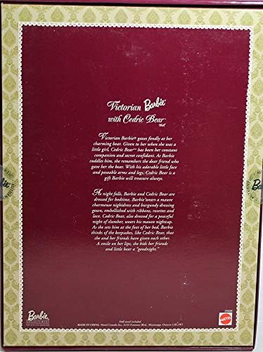 Product Description Victorian Barbie doll gazes fondly at her charming bear. Given to her when she was a little girl, Cedric BearAA has been her constant companion and secret confidant. As Barbie cuddles him, she remembers the dear friend who gave her the bear. With his adorable little face and poseable arms and legs, Cedric Bear is a gift Barbie will treasure always. As night falls, Barbie and Cedric Bear are dressed for bedtime. Barbie wears a mauve charmeuse nightdress and burgundy dressing gown, embellished with ribbons, rosettes and lace. Key Features: Edition: Collector Edition,Release Date: 1/1/2000,Body Type: Poseable,Barbie This product is designed with premium quality, ensuring durability and superior performance.