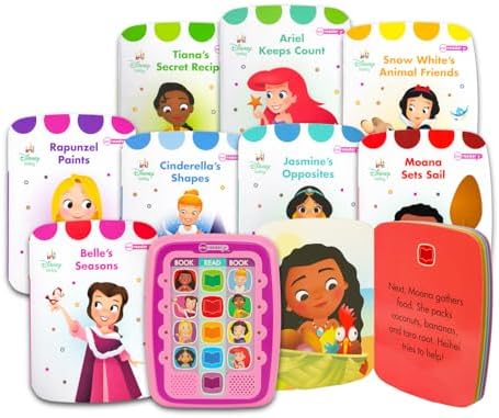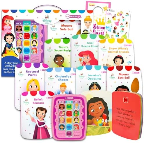 Product Description Disney Princess Me Reader Electronic Reader 8 Book Bundle - 8 Disney Baby Princess Books for Toddlers, Kids Featuring Ariel, Cinderella, More Plus Stickers | Disney Princess Learning Toys Set. This Disney Princess Me Reader book set includes 8 unique Disney Baby Princess books for toddlers and kids as well as 1 Disney Princess Me Reader module. Disney Princess Me Reader reads included books aloud at the press of the button featuring Ariel, Cinderella Belle, and more. Key Features: Disney Princess Me Reader Electronic Reader 8 Book Bundle - 8 Disney Baby Princess Books for Toddlers, Kids Featuring Ariel, Cinderella, More Plus Stickers | Disney Princess Learning Toys Set.,This Disney Princess Me Reader book set includes 8 unique Disney Baby Princess books for toddlers and kids as well as 1 Disney Princess Me Reader module.,Disney Princess Me Reader reads included books aloud at the press of the button featuring Ariel, Cinderella Belle, and more Perfect for kids and toddlers learning to read, this basic concepts book set lets boys and girls alike discover the joy of reading.,Ideal in a Disney Princess gift set or as party favors, the Disney Princess book collection with Disney pricness electronic reader will provide hours of entertainment and learning for kids.,Officially licensed Disney Princess learning toys This Disney Princess 8 book set also comes with bonus Disney Princess stickers and a Beach Kids princess castle door hanger. This product is designed with premium quality, ensuring durability and superior performance.