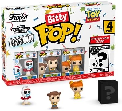 Product Description Your favorite Pops! have been shrunk into Bitty Pops! Expand your Disney Pixars Toy Story collection with this assortment of Bitty Pop! figures featuring your most beloved talking toys! This 4-pack includes Bitty Pop! Forky, Bitty Pop! Woody, Bitty Pop! Gabby Gabby, and a mystery Bitty Pop! figure. The possible mystery Bitty Pops! are Hyper Rare (1/6) Bunny, Hyper Rare (1/6) Bo Peep, Rare (1/3) Ducky, and Rare (1/3) Buzz Lightyear (flying). Bitty Pops! are packaged in hard acrylic cases with detachable bottom lids. Key Features: MYSTERY MINI FIGURE - Chance of unboxing a No Match Found; embrace the excitement of collecting unique minifigures,TINY, DETAILED COLLECTIBLES - Enjoy 0.9-inch (2.3 cm) Officially licensed merchandise of Disney Pixar: Toy Story; Warning: not for children under 3 years old, Choking Hazard,PERFECT FOR MOVIES FANS - Ideal for comic, movie, and series enthusiasts, these collectable Bitty Pops bring excitement and joy to any occasion, appealing to both kids and adults,VERSATILE PARTY ESSENTIALS - Use as party bag fillers for kids, Christmas stocking surprises, and eye-catching cake toppers, adding a special touch to birthdays and events,CAPTIVATING CAKE TOPPERS - transform your special moments using them as eye-catching cake toppers, they are perfect for birthdays, and special events, making every occasion magical and memorable for children and adults alike This product is designed with premium quality, ensuring durability and superior performance.