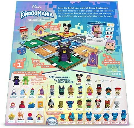 Product Description Enter the digital game world of Disney Kingdomania! Each level features cherished Disney stories and characters, but troublesome Glitches are causing chaos and mixing up the levels! Patch the problems before they crash the game! Each Game Ball contains everything you need to play, including two mystery characters and 10 unique level tiles. Key Features: Disney Kingdomania is a Collectible Game System with your favorite Disney/Pixar characters in a world of adorbale chaos,Each Game Ball contains everything you need to play, including two character figures with unique game tiles and special powers.,Play solo or combine Game Balls to add more players,Build your own game level each time you play, and collect more tiles to create bigger, multi-level games.,Series 1 features 40 figures from eight beloved Disney properties Collect them allA"including exclusive variants and chase figures,Discover the rare Glitch figuresA"only available in Game Balls,One player per Game Ball, Ages 6+, 15-Minute Gameplay This product is designed with premium quality, ensuring durability and superior performance.