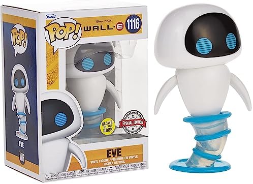 Product Description Popular! Eve takes off on her next mission to your Wall-E collection! Complete your Disney Pixar set with this exclusive, glow in the dark pop! Eve before she flies. Vinyl figure is approximately 4.5 inches tall. Key Features: PERFECT SIZE FOR COLLECTION - At approximately 9.5 cm tall, this vinyl mini figure can complement other items and fits perfectly into your collection or on your desk.,PREMIUM VINYL MATERIAL - Made of high quality durable vinyl, this collectible is built to last and withstand daily wear and tear, ensuring lasting enjoyment for fans and collectors.,PERFECT GIFT FOR WALL-E FANS - Ideal for holidays, birthdays, special occasions or just as a gift, this exclusive figure is a must-have addition to any Wall-E collection,ENLARGE YOUR COLLECTION - Add this unique Eve vinyl item to your growing assortment of Funko Pop figures! and look for other rare and exclusive collectibles to get a complete set,POP CULTURE FLAGSHIP BRAND - Trust the expertise of Funko, the first pop culture merchandise creator that includes vinyl figures, articulated toys, plush toys, clothing, board games and much more. This product is designed with premium quality, ensuring durability and superior performance.