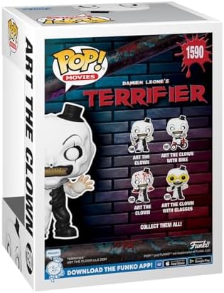 Product Description Your horror collection is dying for a frightfully fun new addition! Pop! Art the Clown has arrived to complete your Terrifier set. Key Features: IDEAL COLLECTIBLE SIZE - At approximately 3.75 inches (9.5 cm) tall, this vinyl mini figurine complements other collectable merchandise and fits perfectly in your display case or on your desk.,PREMIUM VINYL MATERIAL - Made from high-quality, durable vinyl, this collectible is built to last and withstand daily wear, ensuring long-lasting enjoyment for fans and collectors alike.,PERFECT GIFT FOR TERRIFIER FANS - Ideal for holidays, birthdays, or special occasions and as a present this exclusive figurine is a must-have addition to any Terrifier merchandise collection,EXPAND YOUR COLLECTION - Add this unique Art the Clown vinyl display piece to your growing assortment of Funko Pop! figures, and seek out other rare and exclusive collectible items for a complete set,LEADING POP CULTURE BRAND - Trust in the expertise of Funko, the premier creator of pop culture merchandise that includes vinyl figures, action figures, plush, apparel, board games, and more. This product is designed with premium quality, ensuring durability and superior performance.