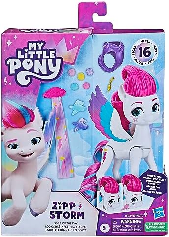 Product Description Customize rockin' hairstyles, awesome outfits, and fun accessories with My Little Pony Style of the Day Zipp Storm! Zipp is a rebellious Pegasus princess who discovers exciting magic in the My Little Pony: Make Your Mark Bridlewoodstock special. This My Little Pony figure comes with everything needed for music festival fashion. Key Features: STYLE ZIPP STORM'S ROCKIN' LOOK: Get this Zipp toy ready to rock with clip-on mane extension, water-reveal face paint, outfit and jewelry accessories, and more,16 PIECES: My Little Pony hair styling doll set includes accessories for amazing manestyles, festival fashions, and stickers for customizing toy pony,ENTERTAINMENT-INSPIRED: Fashions and accessories are inspired by the My Little Pony: Make Your Mark Bridlewoodstock special where the ponies throw a magical music festival,5.5-INCH POSEABLE PONY: Fashion doll pony is 5.5 inches tall with articulated arms and legs for posing My Little Pony figures make great gifts for 5 year old girls and boys,LOOK FOR OTHER STYLING PONIES: Discover more kids toys with Style of the Day Princess Pipp Petals, Misty Brightdawn, and more (Each sold separately Subject to availability.) This product is designed with premium quality, ensuring durability and superior performance.