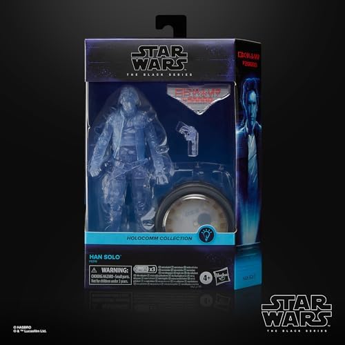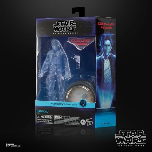 Product Description The Star Wars The Black Series range includes 6-inch figures, vehicles and cosplay items inspired by over 40 years of the Star Wars galaxy. This Star Wars The Black Series figure has been designed to look like a holographic version of Han Solo, with a premium design and multiple points of articulation. In addition, each The Black Series Holocomm Collection figure includes a luminous holographic puck for exhibition. (Other products sold separately, while stocks last.) Star Wars items are produced by Hasbro with permission from Lucasfilm Ltd. Key Features: HOLOCOMM COLLECTION: Receive transmissions from across the galaxy with The Black Series Holocomm Collection and its luminous holographic pucks,PREMIUM ARTICULATIONS AND DESIGN: Star Wars collectors will be able to display this highly articulated uniquely designed 6-inch figure in their collection,INCLUDES REWARDS SHEET: This collectible figure includes 3 accessories, including a reward card, and is a great gift for Star Wars fans (ages 4+),LIGHTS: Simply press the puck button to turn it on and illuminate the figure By holding down the button, the illumination is activated for 30 minutes,GOALS TO THROUGH THE GALAXY : Other The Black Series Holocomm Collection figures are also available to create their own galactic communication network in its collection (sold separately; subject to stock) This product is designed with premium quality, ensuring durability and superior performance.