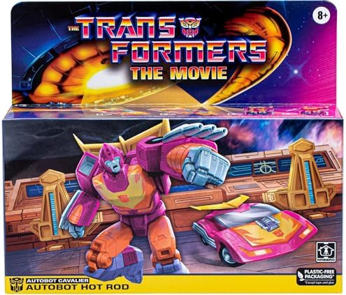 Product Description Transformers Retro G1 action figures are designed like the original releases, updated with deco based on the 1986 animated film, The Transformers: The Movie. Figures feature vintage styling, accessories, and exclusive package art and tech specs inspired by the 1986 movie. Hot Rod is a headstrong and self-confident young Autobot. In spite of this, he is destined for greatness, and to light the darkest hour. Autobot Hot Rod figure comes with 2 blaster accessories. This figure converts from racecar to robot mode in 6 steps. Key Features: ORIGINAL G1 DESIGN: This vintage G1 Autobot Hot Rod figure is inspired by the original G1 release, featuring updated deco inspired by the characteraTMs appearance in The Transformers: The Movie,CLASSIC CONVERSION: Autobot Hot Rod action figure features classic conversion from racecar to robot mode in 6 steps,VINTAGE ACCESSORIES: Comes with 2 blaster accessories Weapon accessories attach in both modes,RETRO-INSPIRED PACKAGING: Inspired by the original G1 packaging, updated with a design inspired by The Transformers: The Movie, including artwork and bios based on the movie,TECH SPECS: Clip and save the tech specs included on the pack in the classic G1 style fans know and love to compare figuresaTM strength, speed, firepower, and more,Figure scale: 5.5-inch,Ages 8 years and up This product is designed with premium quality, ensuring durability and superior performance.