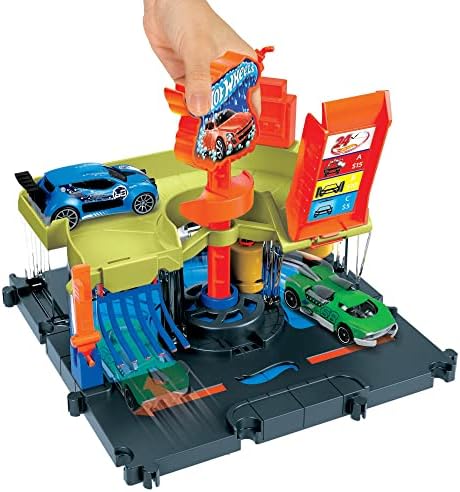 Product Description After battling the vicious creatures of Hot Wheels City, hit the car wash to clean off the grime and debris of city living. Turn the logo sign and the car automatically moves through the wash, always visible through the transparent windows. Drive up the ramp to refuel or park, then head off to other adventures. The set connects to other Hot Wheels sets through multiple connection points and comes with one Hot Wheels vehicle for push-around play straight out of the box. Each sold separately, subject to availability. Key Features: When battling the toxic creatures, every car needs a good clean-up at the Hot Wheels City Downtown Express Car Wash Playset before tackling more adventures Cool push-around play details add to the realism and fun!,Kids spin the logo sign and cars automatically roll through the wash that includes a foam roller and drying flaps for complete coverage.,The set includes 1 Hot Wheels toy car for immediate play and fun straight out of the box.,Connect the Hot Wheels City Downtown Express Car Wash Playset to other sets to build a unique world of fun and adventure, with cool features that increase the fun! Each set sold separately.,Makes a great gift for kids 4 to 8 years old and timeless collectors who love the detail and character of Hot Wheels playsets. This product is designed with premium quality, ensuring durability and superior performance.