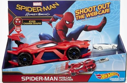 Product Description Based on the suit from the Spider-Man: Homecoming movie, this Spider-Man Character Car windshield moves with a push of the spoiler to focus in on his target. The spoiler also launches the included exclusive web car (or most Hot Wheels cars) to take down villains and other obstacles. Race to the scene of the crime! Push down on spoiler to launch the Spider-Man web car at villains to take them down. Launch other super hero cars, too. Push down the spoiler to make Spider-Man's eyes change size so he can focus and aim. Key Features: Based on the new suit from the Spider-Man: Homecoming movie, the Marvel Hot Wheels Spider-Man Web-Car includes a character car and launcher.,The vehicle's windshield moves with a push of the spoiler to focus on a target.,The spoiler also launches the included exclusive web car to take down villains or other obstacles.,Push the spoiler to launch the Spider-Man car and make its eyes change size so he can focus and aim.,The large-scale car makes a great toy for collectors and fans of Spider-Man and the Marvel Universe. This product is designed with premium quality, ensuring durability and superior performance.